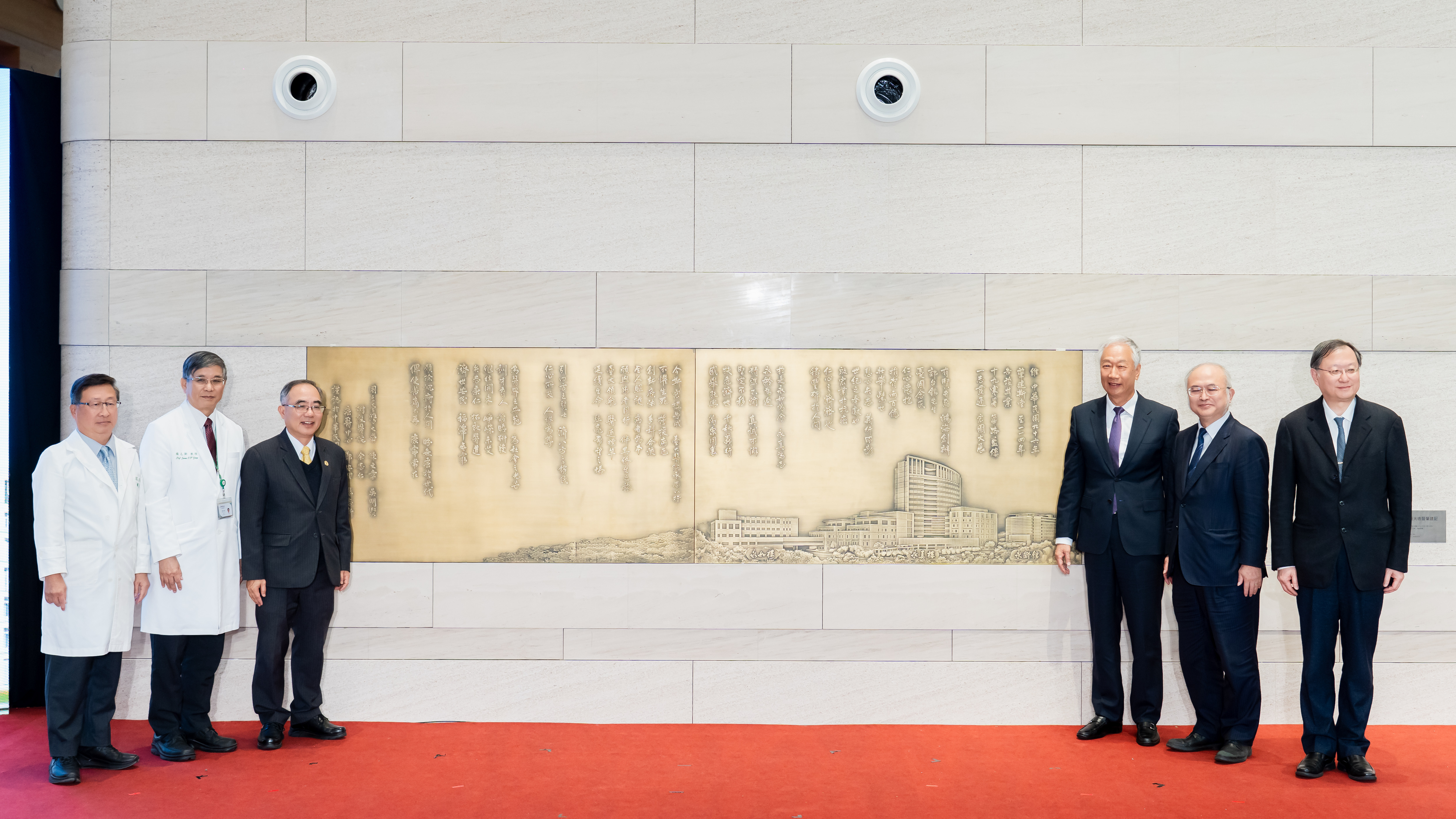 「今斯宏構告成,臺大醫院承志以行。 願除沉痾於人間、盼無癌於世代。」