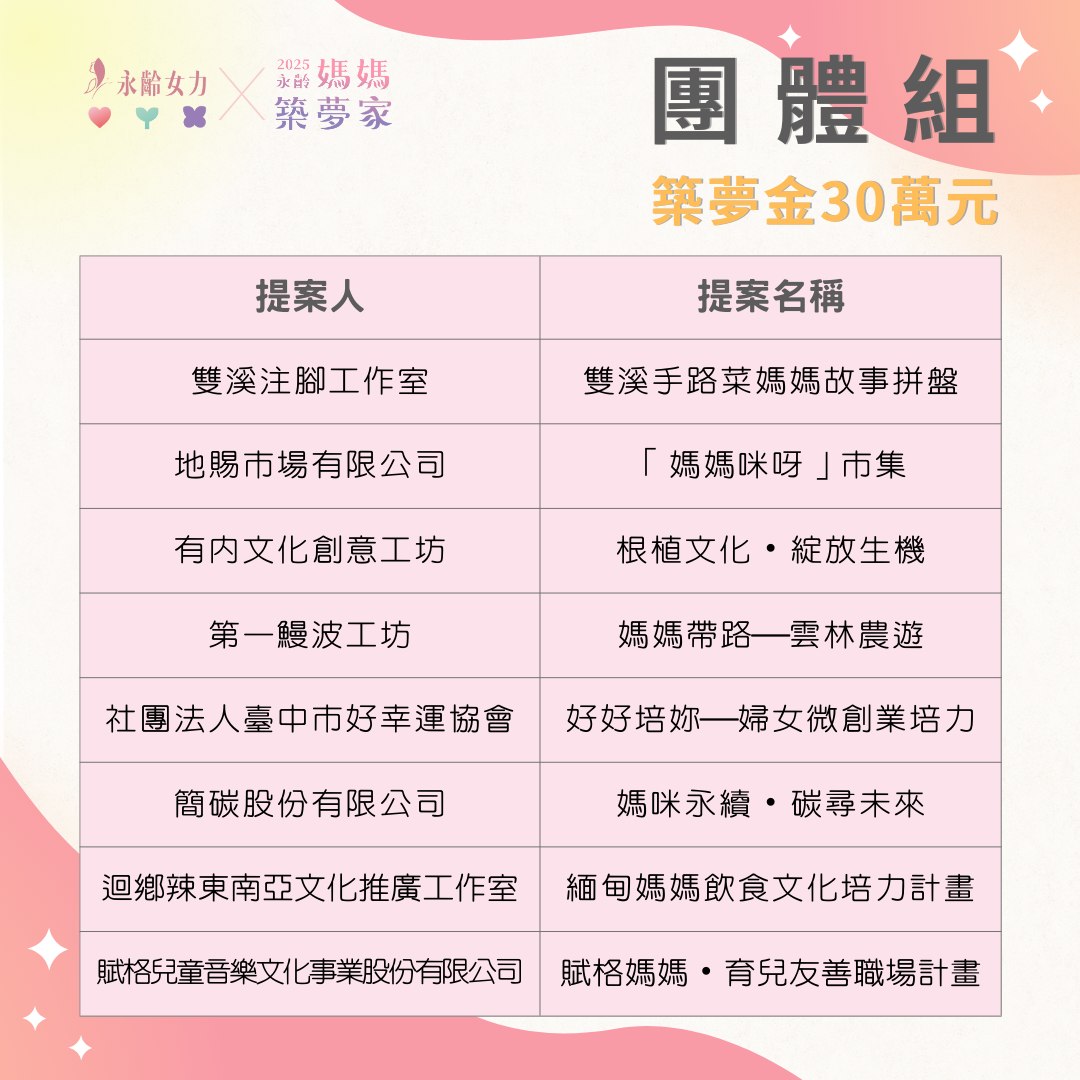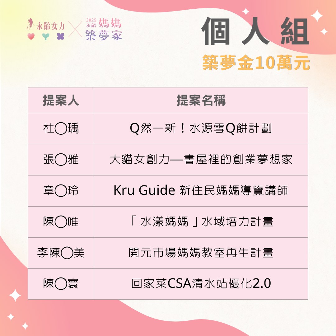 ★ 關於永齡媽媽築夢家徵件活動相關問題,歡迎寫信至 yonglinwmpower@gmail.com 或私訊 永齡女力 Facebook 詢問